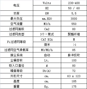 3個(gè)聚酯纖維筒式過濾網(wǎng)裝在鋼制過濾艙中,總過濾面積80000 cm2,過濾精度 高達(dá)1微米 。全自動(dòng)空氣脈沖反吹清潔系統(tǒng)通過壓縮空氣輪流吹向筒式濾網(wǎng),清潔頻率可通過控制面板上的定時(shí)器進(jìn)行設(shè)置,能持續(xù)有效地清潔過濾網(wǎng),清除附著在濾網(wǎng)上的大部分灰塵,從而保持機(jī)器正常的吸塵功效和延長濾網(wǎng)使用壽命。模壓鋁制吸塵口直徑為Ø80 mm,位于過濾網(wǎng)下面,能夠同時(shí)吸塵、吸固體和吸水(水量不得超過塵桶容量),無需更換或取出過濾網(wǎng)。 壓縮機(jī)需另配。